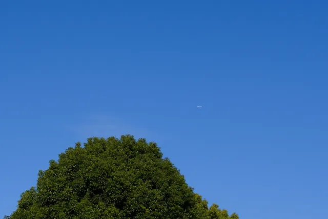 封面图拍摄于东京上野公园附近的天空,刚好有一个飞机飞过,这个蓝色和树结合挺有感觉。