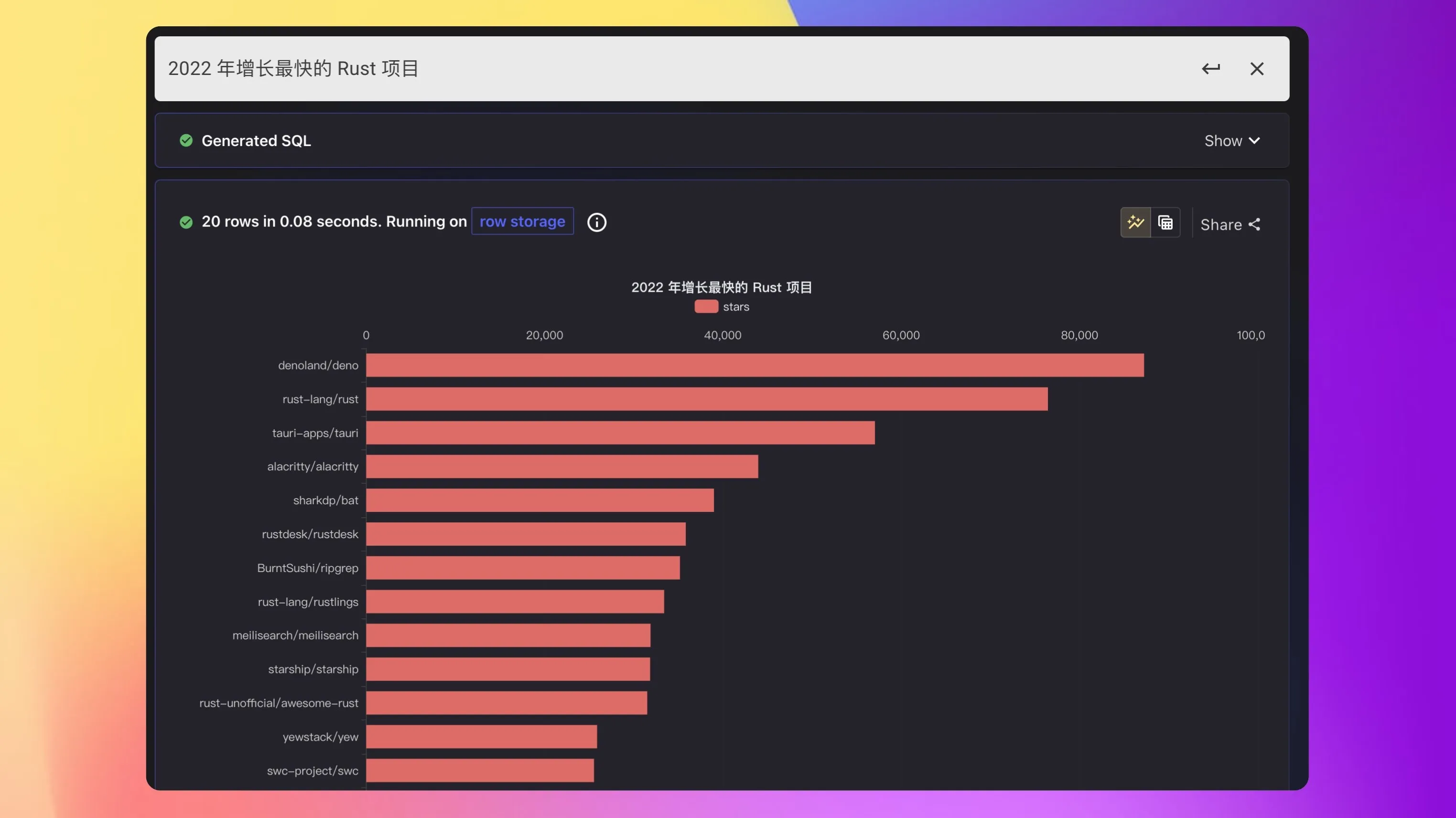 OSSInsight has released a new tool that lets you query GitHub data using natural language. it uses AI to turn your questions into complex SQL queries—perfect for digging into the fastest-growing projects of 2022.