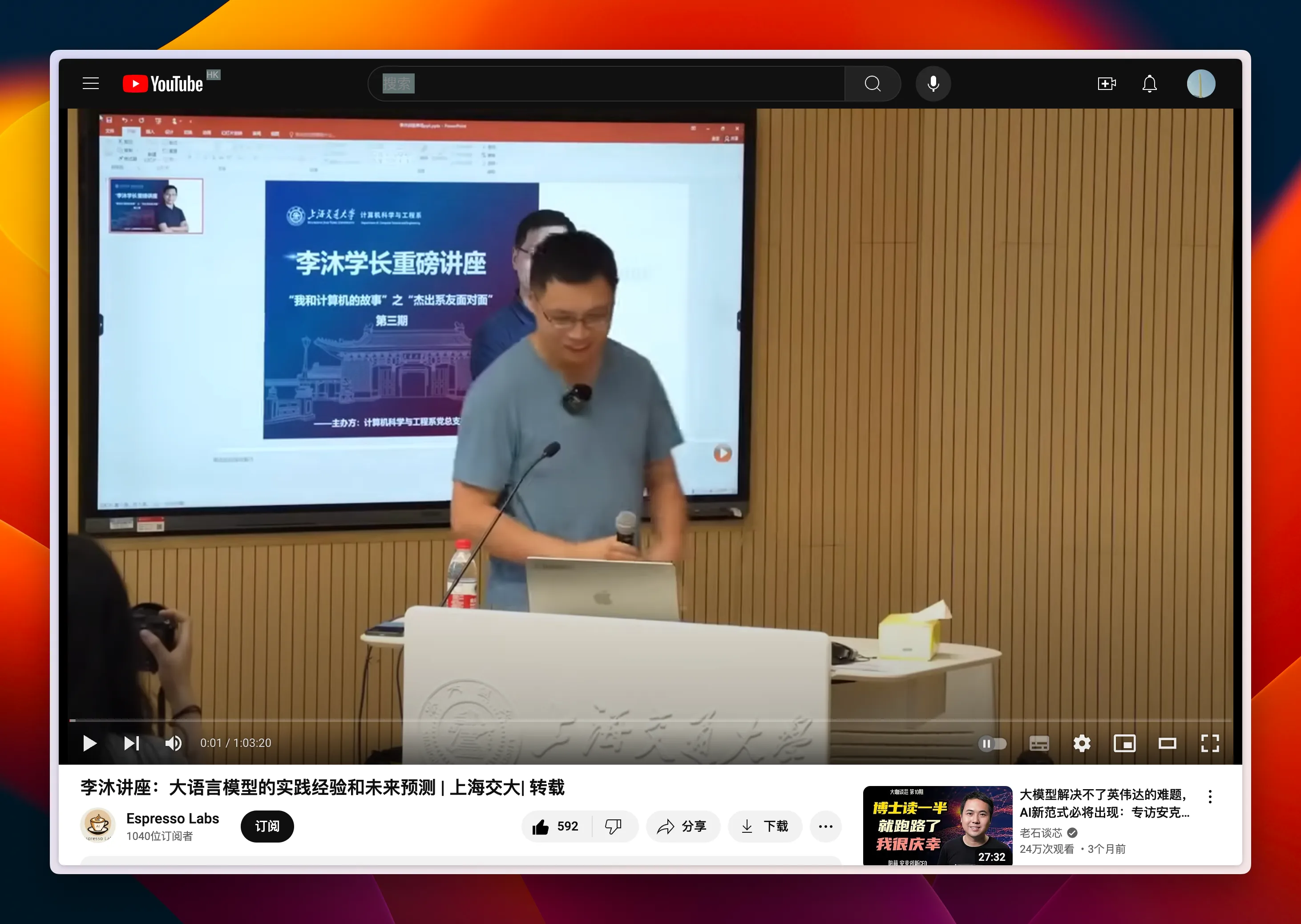 If you’re interested in AI’s future and LLM experience, check out Li Mu’s lecture at SJTU. it’s very insightful and has a certain “technical proximity” compared to purely foreign content.