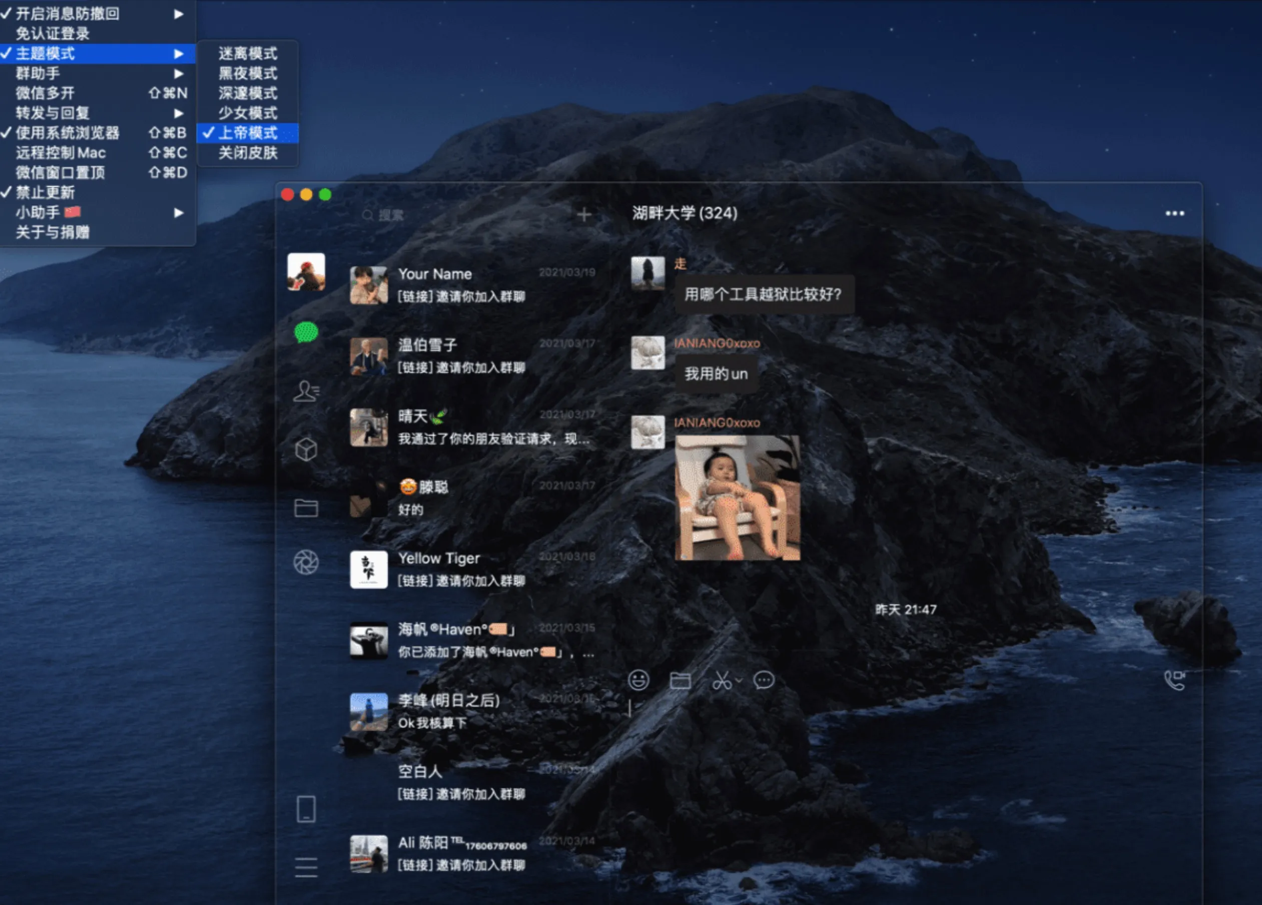 https://github.com/MustangYM/WeChatExtension-ForMac