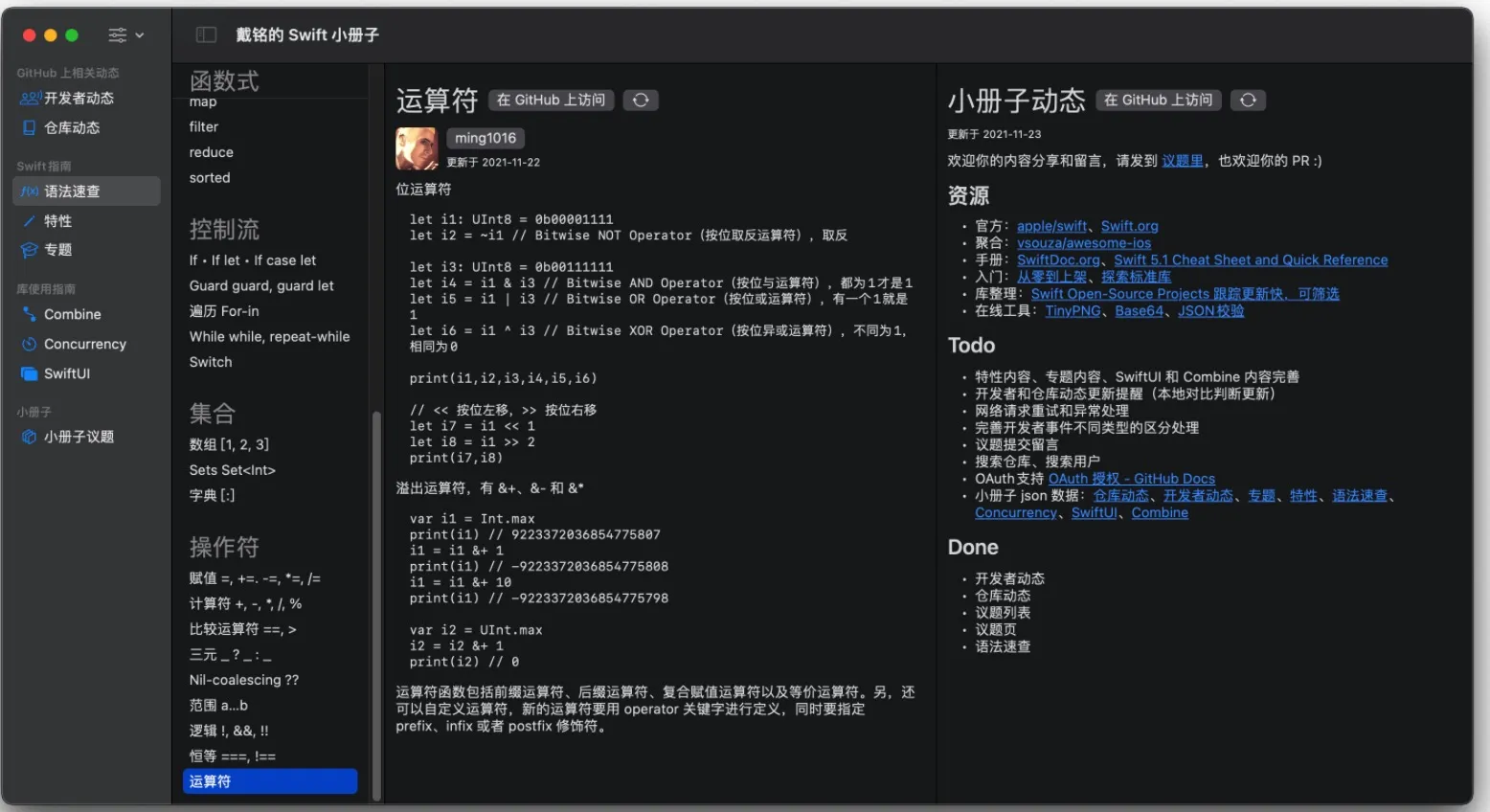 https://github.com/ming1016/SwiftPamphletApp