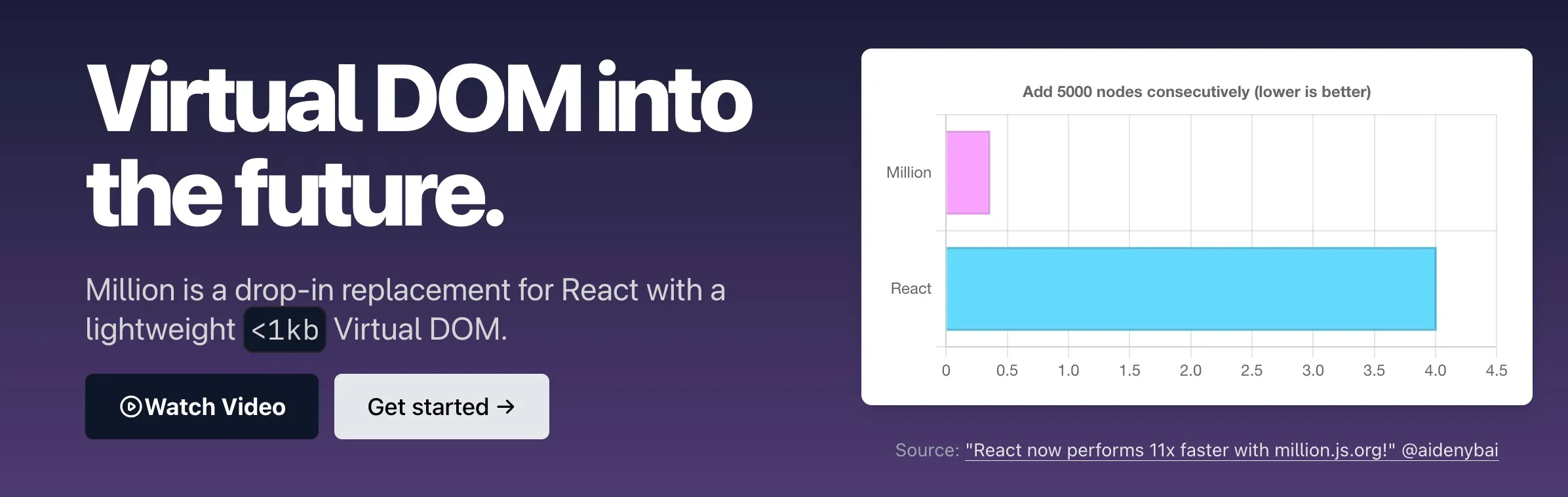 Million is a light React-compatible alternative that clocks in at under 1KB. its performance is staggering—truly a masterclass in optimization.