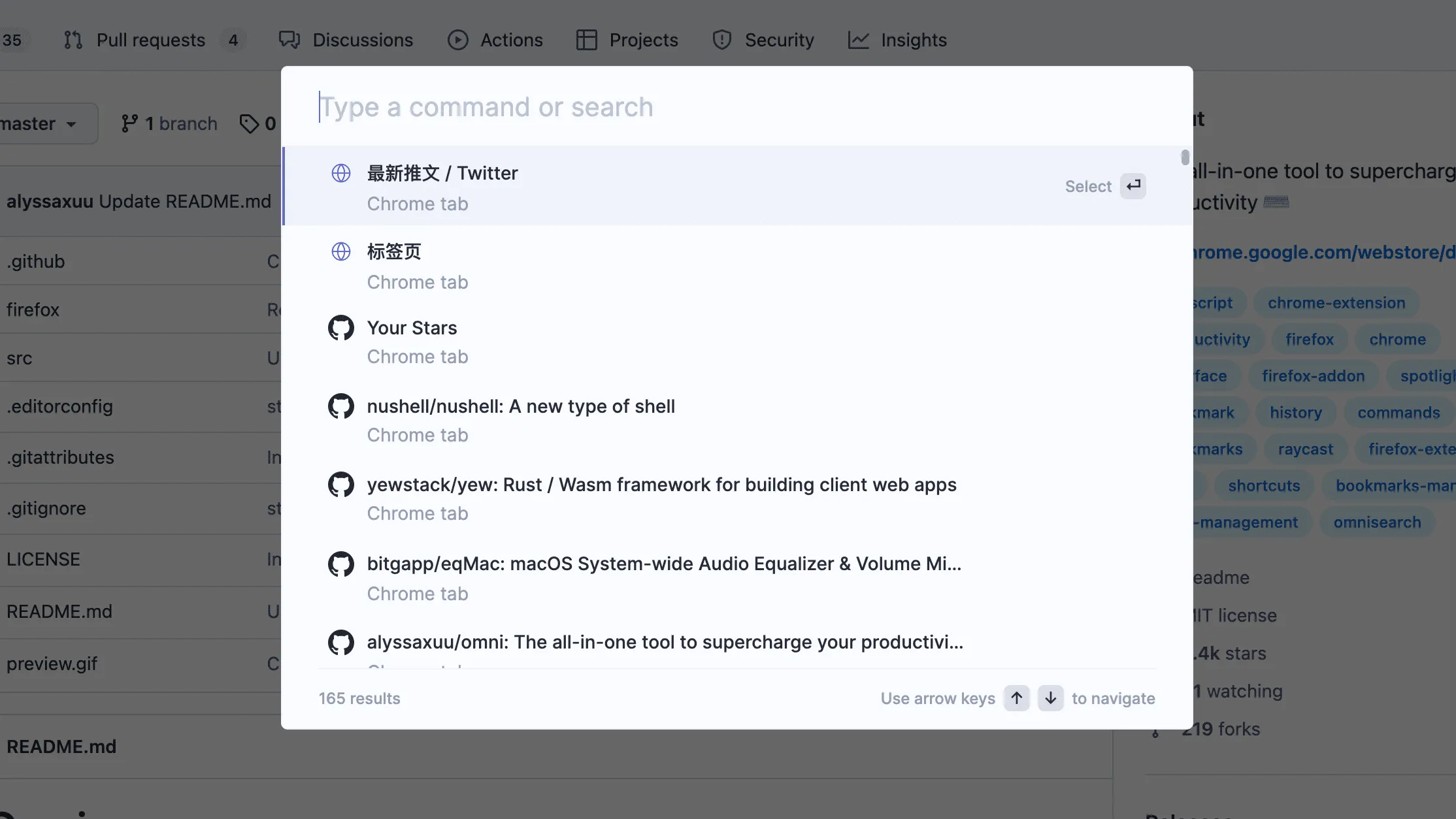 Manage your tabs, bookmarks, and history with a fast, spotlight-style command interface. perfect for navigating like a pro.