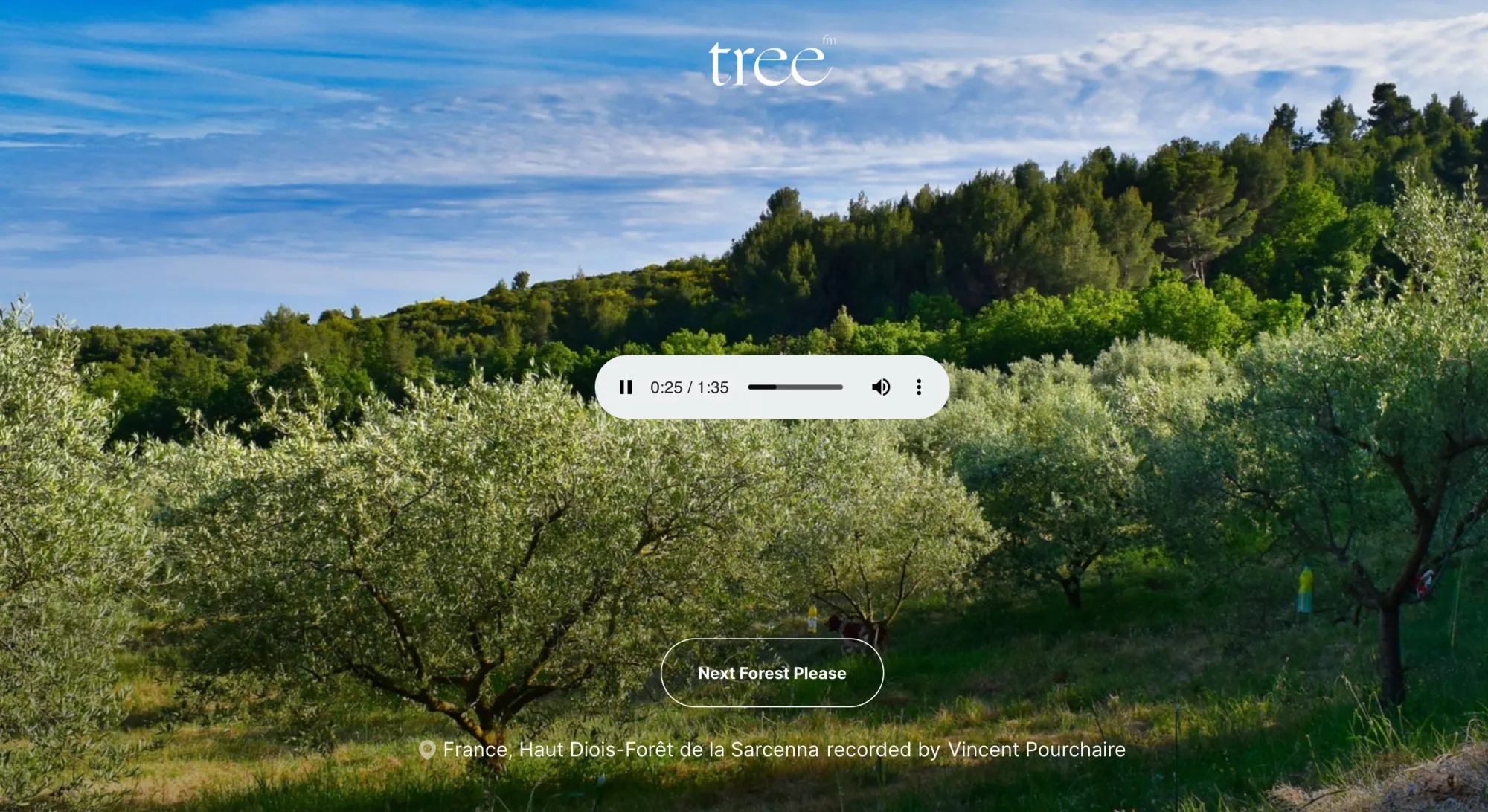 这个小工具还不错,将世界各地森林的声音做成的环境白噪音,可以从首页点击随机进入一个地方的森林,免费,效果还挺赞,适合专注干活时候使用。