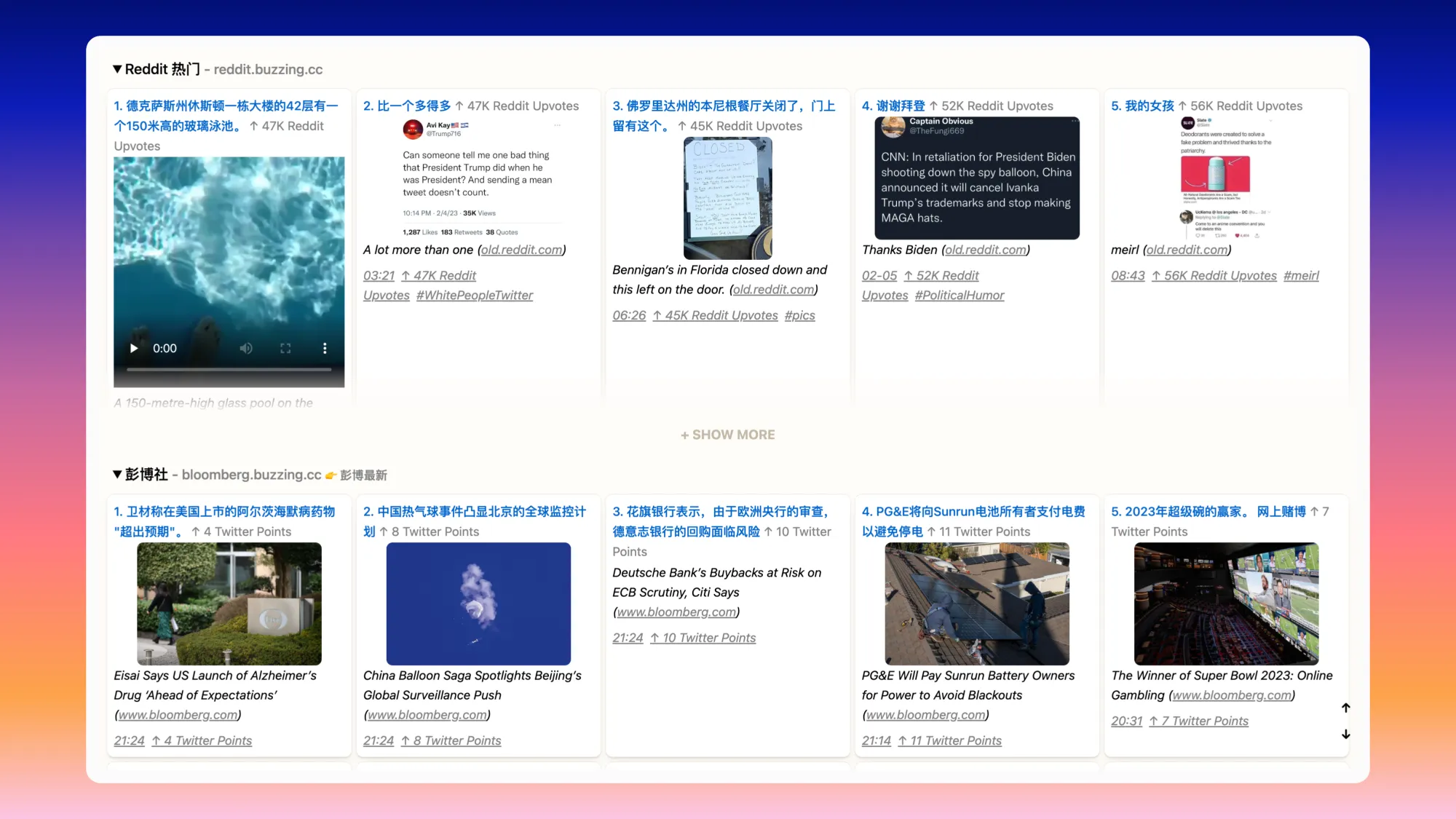 之前对于外文社区非技术的文章说实话很难沉浸的看下去,最近发现一个工具叫「Buzzing」,太太太好用了,用中文浏览国外社交媒体里的热门讨论,母语快速导读,感兴趣再进原文深度阅读,还可以看到不少 Reddit 搞笑热门,很有趣。