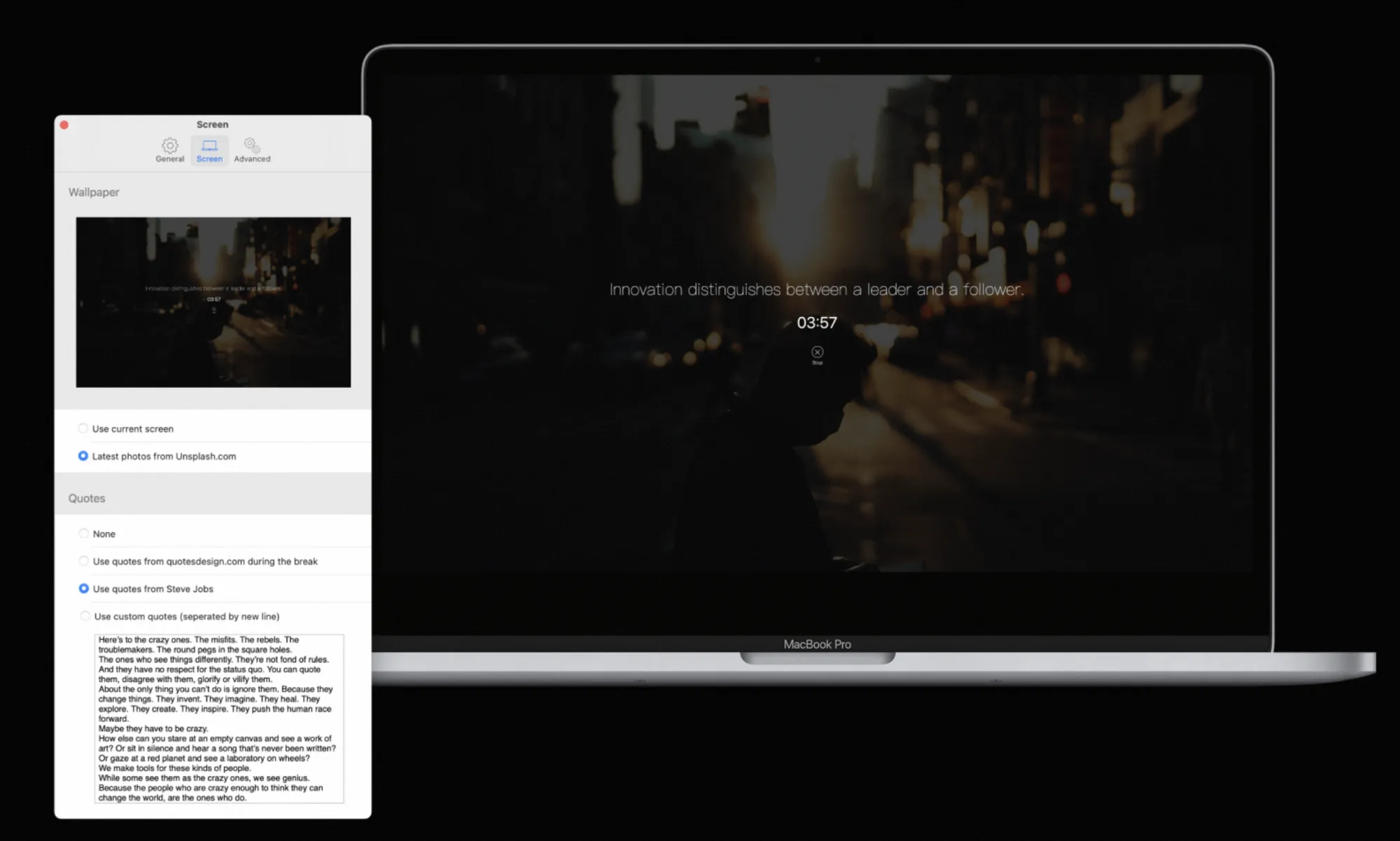 最近开始关注电脑用眼过久提醒我休息的软件,找到一个免费好用「Just Focus 2」,也是一个简单的番茄工作法计时器,支持快捷键,在需要休息的时候,用出现一个全屏的视图,防止你忍不住干活,同时也提供每日的统计数据,方便回顾。