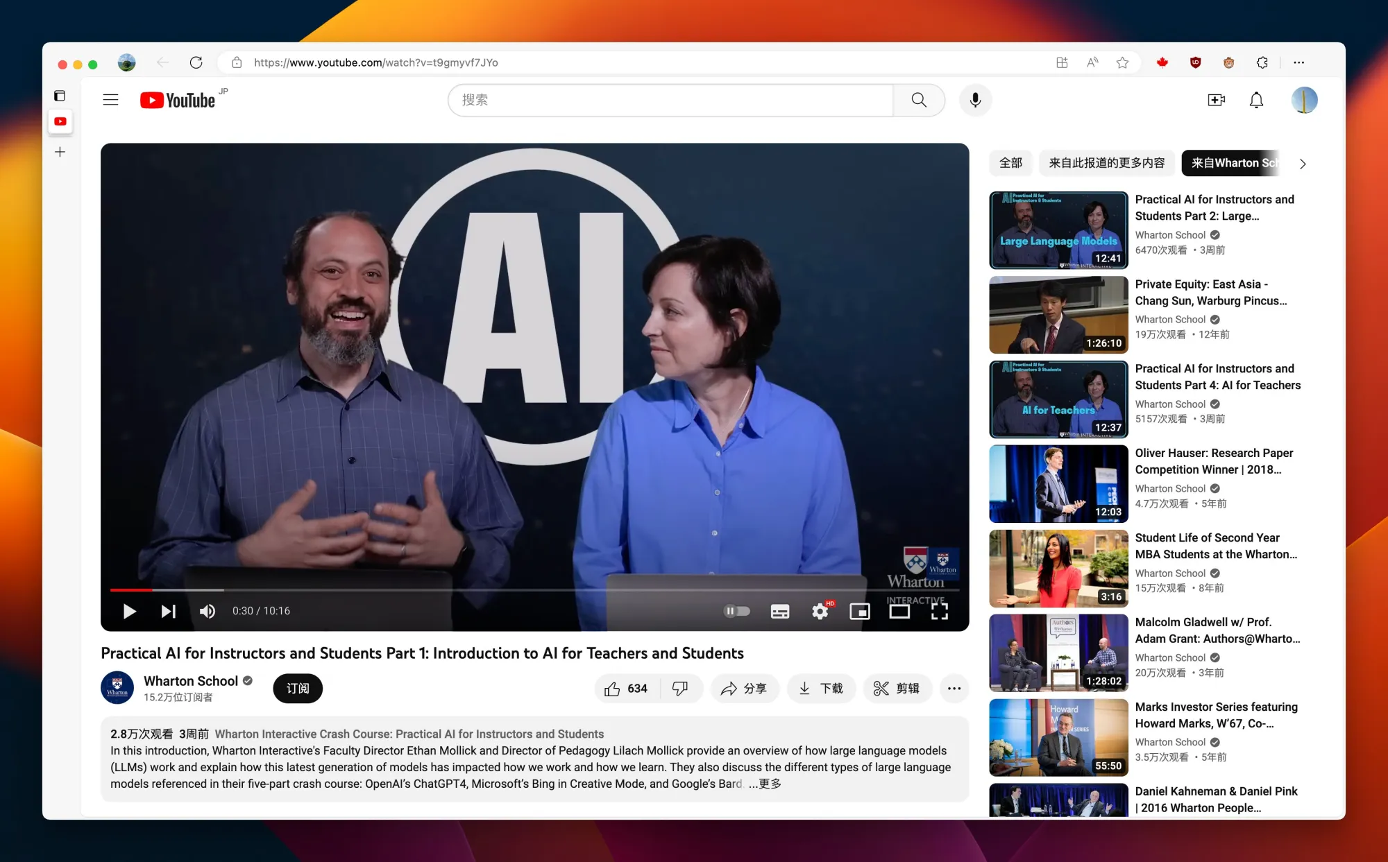 逛 YouTube 的时候看到一个很不错的「面向教师和学生的实用人工智能课程」,来自宾夕法尼亚大学沃顿商学院,展示了如何利用人工智能使教学更加简单和有效,提供了示例提示和指导,以及学生如何利用人工智能提高学习效果。