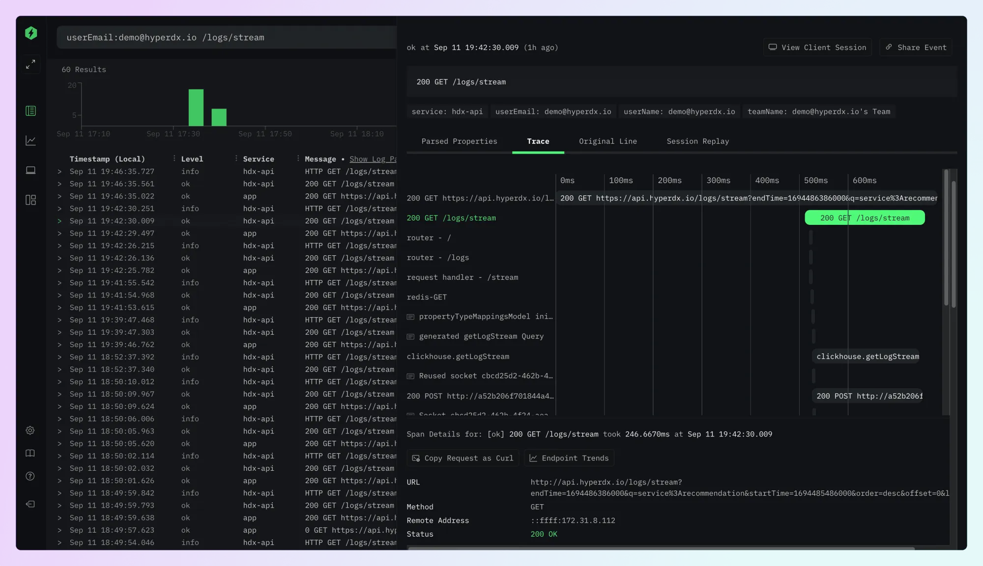 找到一个开源可观察性平台 HyperDX,通过将日志、指标、跟踪、异常和会话重播集中并关联到一处,帮助工程师更快地找出生产环境中出问题的原因,交互使用体验做得挺不错,有类似场景可以自己部署试试。