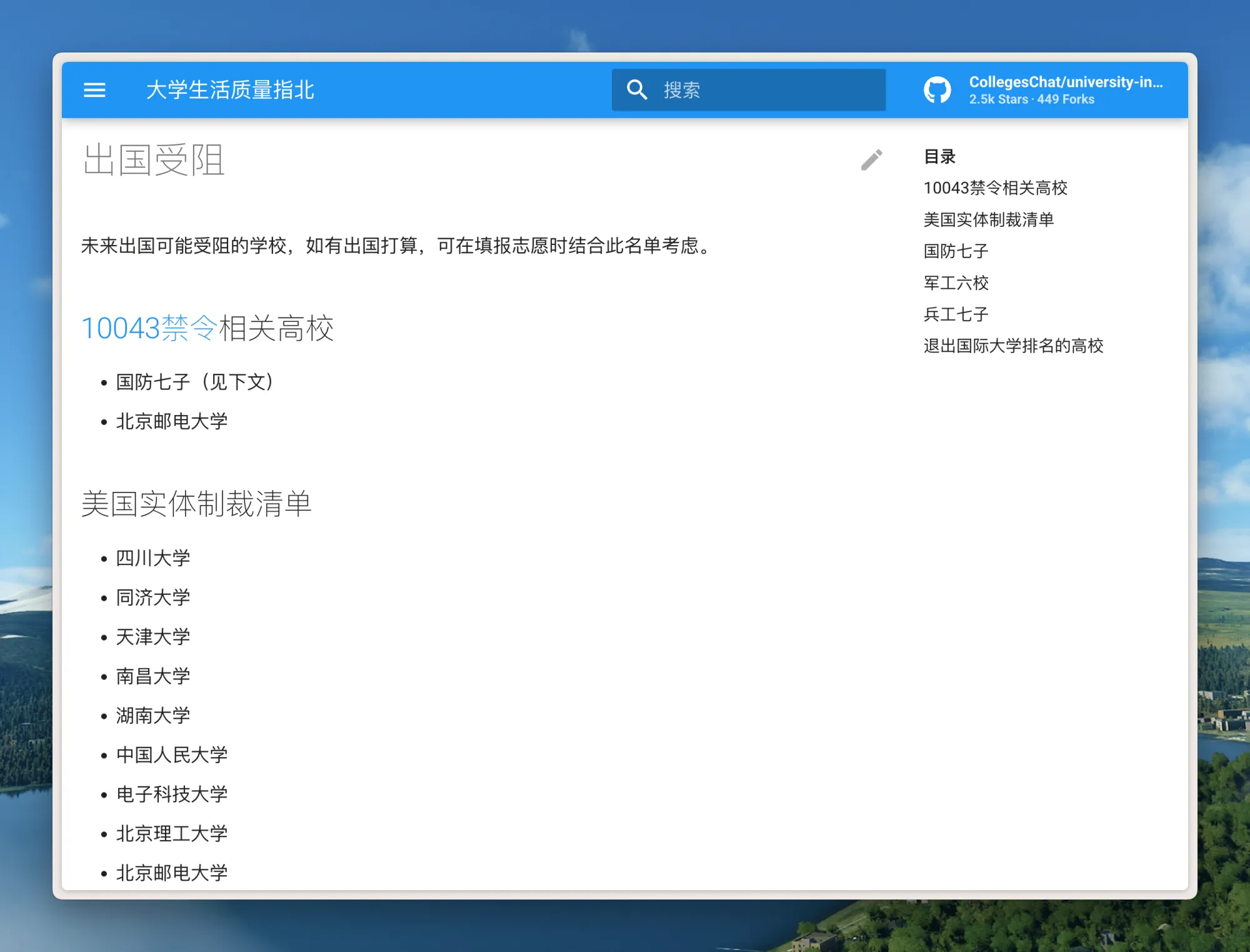 这个《大学生生活质量指北》整理得挺好的,意在收集全世界各高校招生时不会写明但实实在在影响大学生活质量的详尽信息,我想着假如这个文档给到大模型聊天,对于当前一些毕业生的选择大学其实挺方便的。