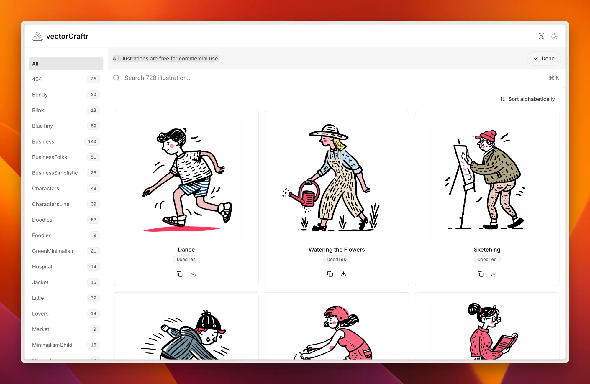 最近想找一些免费好看的插画文件,找到了这个,风格非常之多,样式也比较好看,直接下载就可以使用,能够给一些网站本身添加一些活波的感觉。