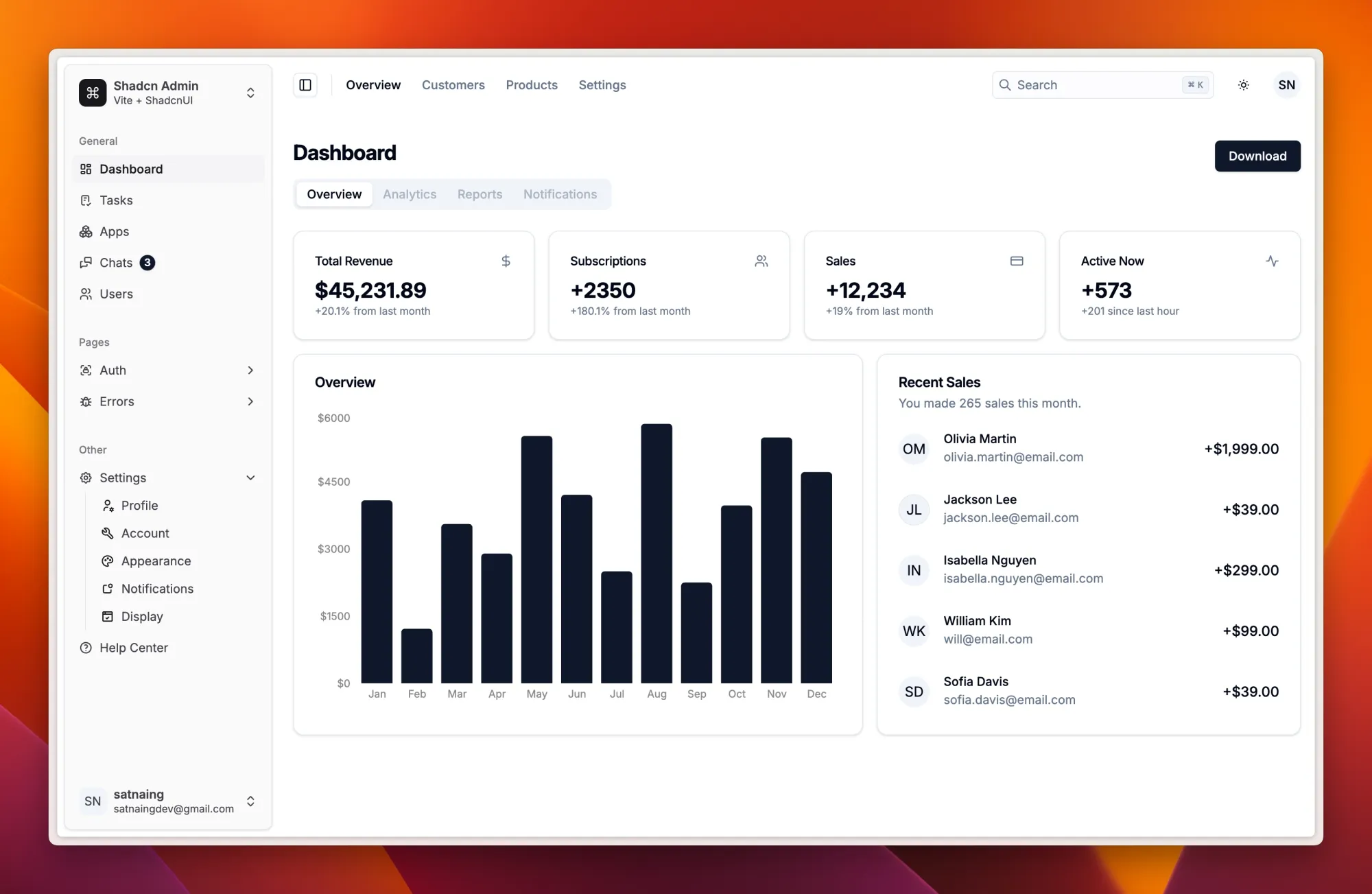 这个开源的管理后台 shadcn-admin 做得好好看,相比看到千篇一律的国内中后台管理后台的效果舒服太多了,基于 Shadcn 组件和 Vite,该包括的东西也都包括了,直接使用简单改改就可以有一种不错的效果。