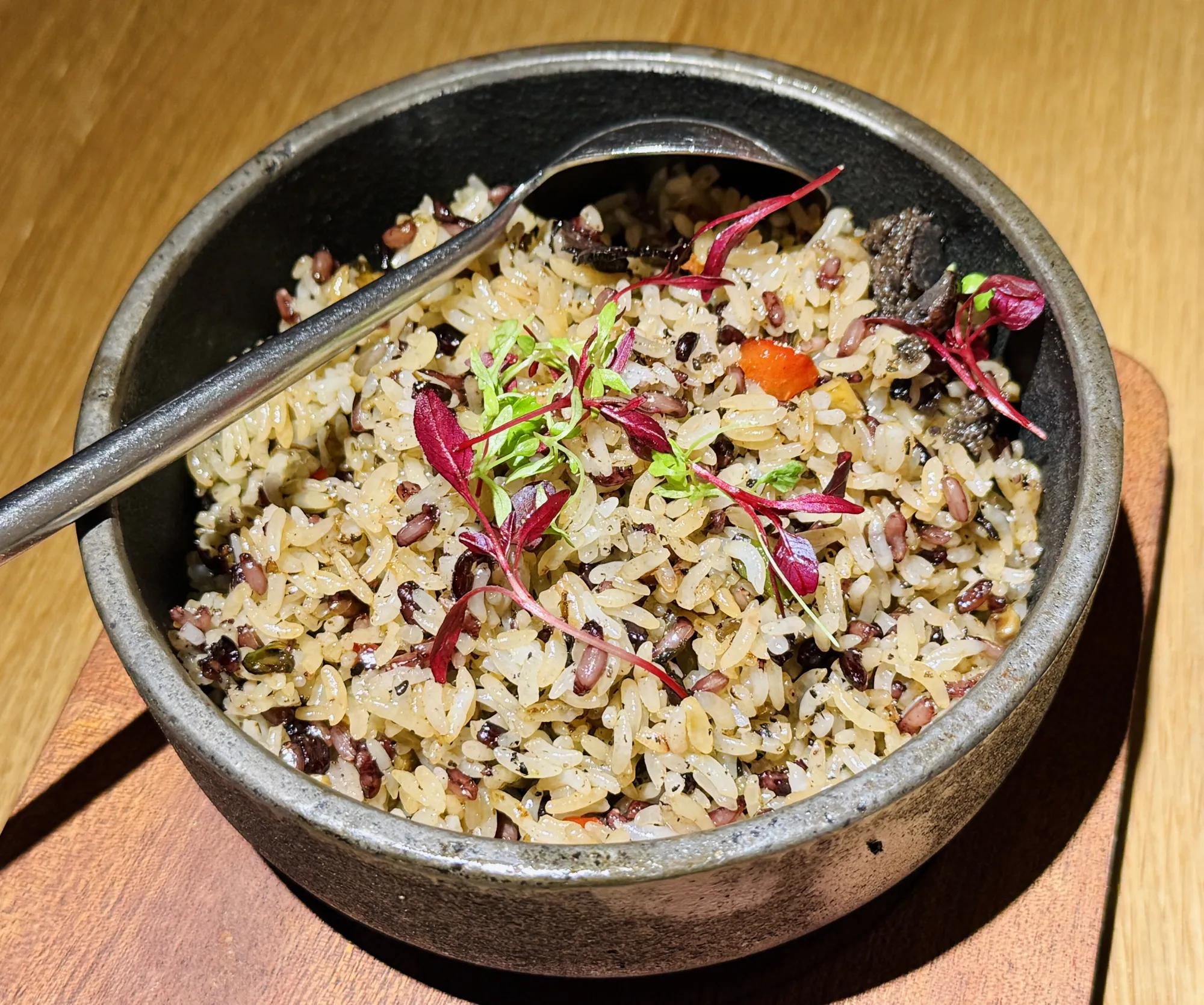 封面图拍摄于周末去市区办事,去嘉里中心吃了个纯素食餐厅,叫做庆春里,炒饭爱好者看到有炒饭的餐厅一般会点来吃吃,味道挺可以,他家的麻婆豆腐也好吃的。