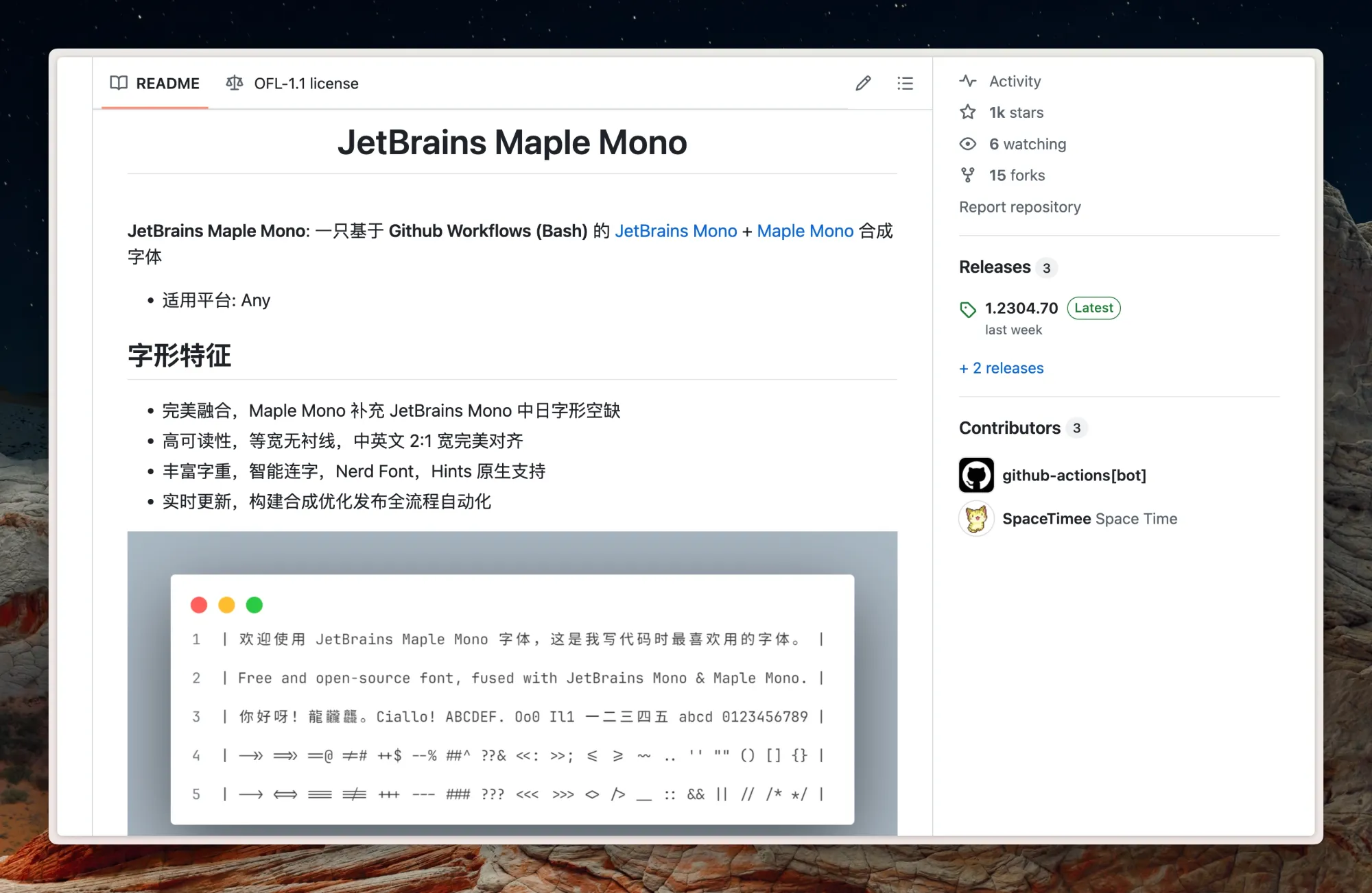 有开源的小伙伴给我最喜欢的编程字体 JetBrains Mono 弄了一个中日字形空缺合成字体 JetBrains Maple Mono,挺好看的,我选择是这个 JetBrainsMapleMono-NF-NR-XX,这个中文相比默认的更紧凑一点,看着很舒服。