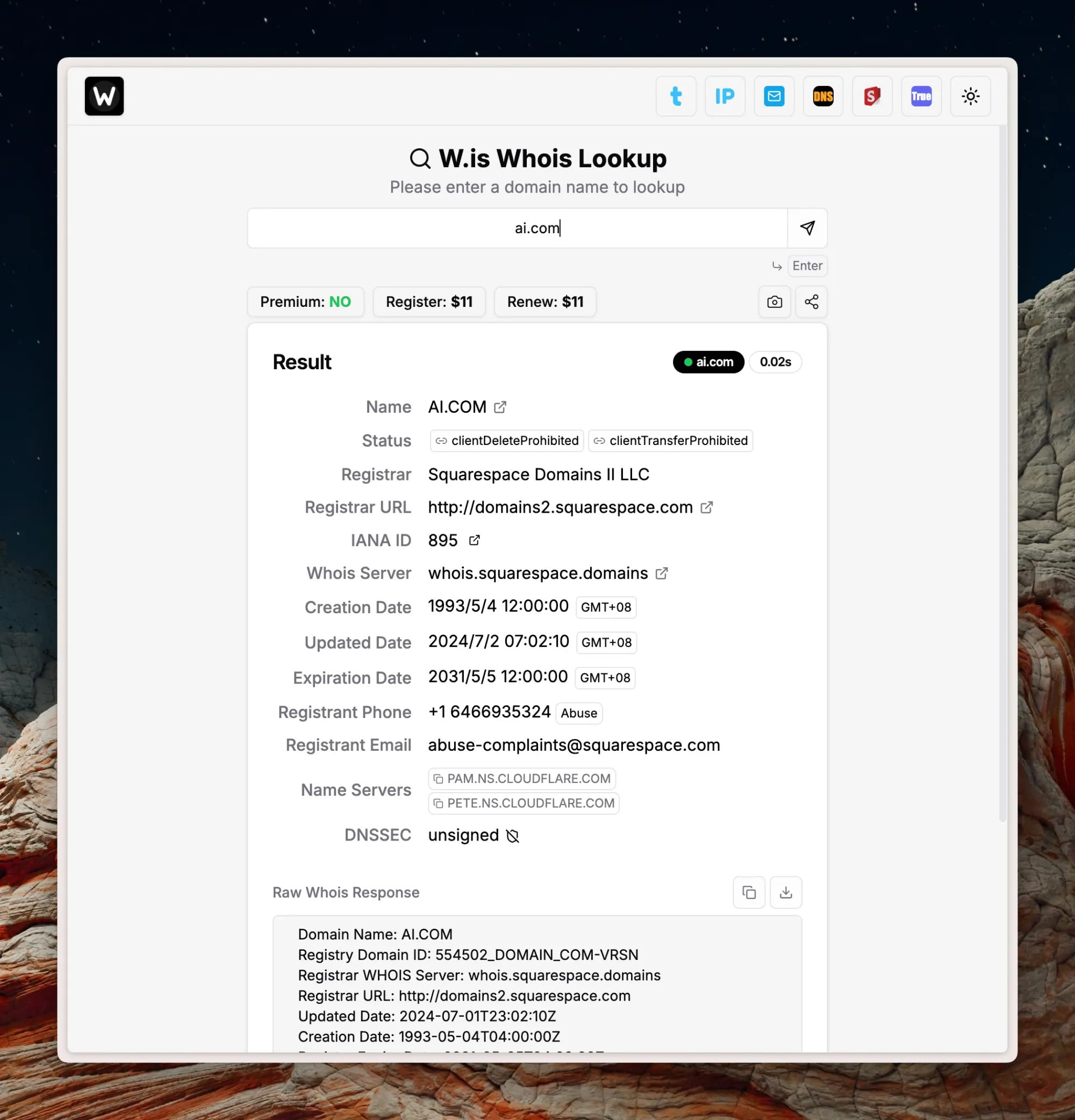 这个域名好短,用来查询域名信息的工具,信息很全。