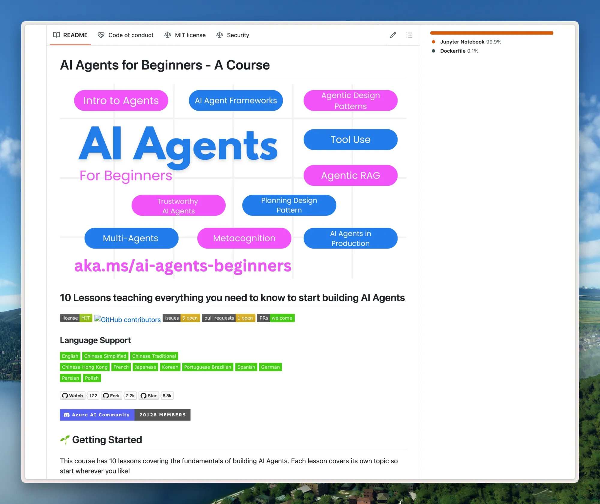 微软又出了一个挺不错的 AI 学习教程 ai-agents-for-beginners,用 10 节课的方式来教会你开发 Agent,打算慢慢看看。