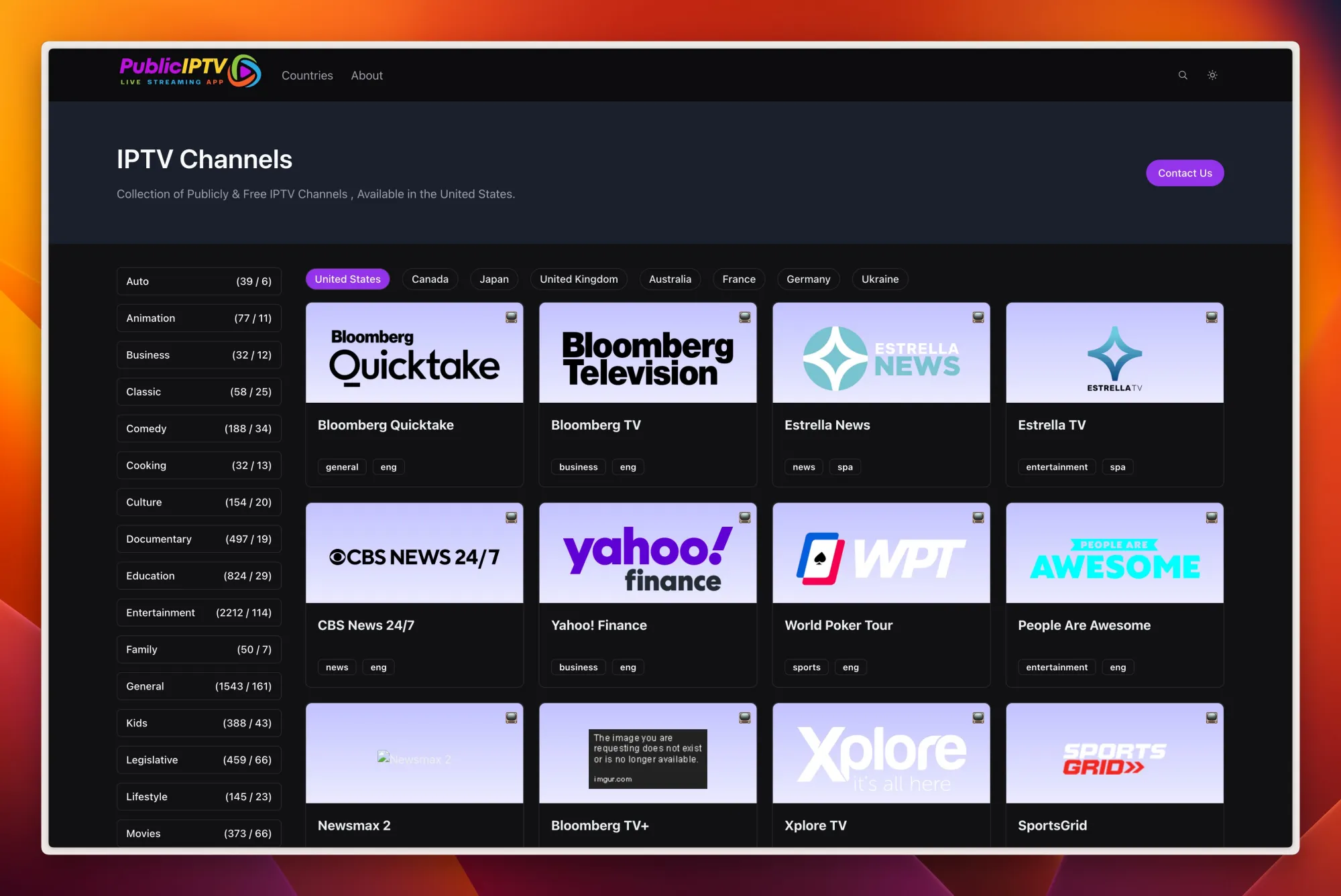 各国可用的公共免费 IPTV 频道集合,好比在家里看外国区域的电视节目,点击就可以播放,非常之全,我甚至周末看起了美国的美食节目。