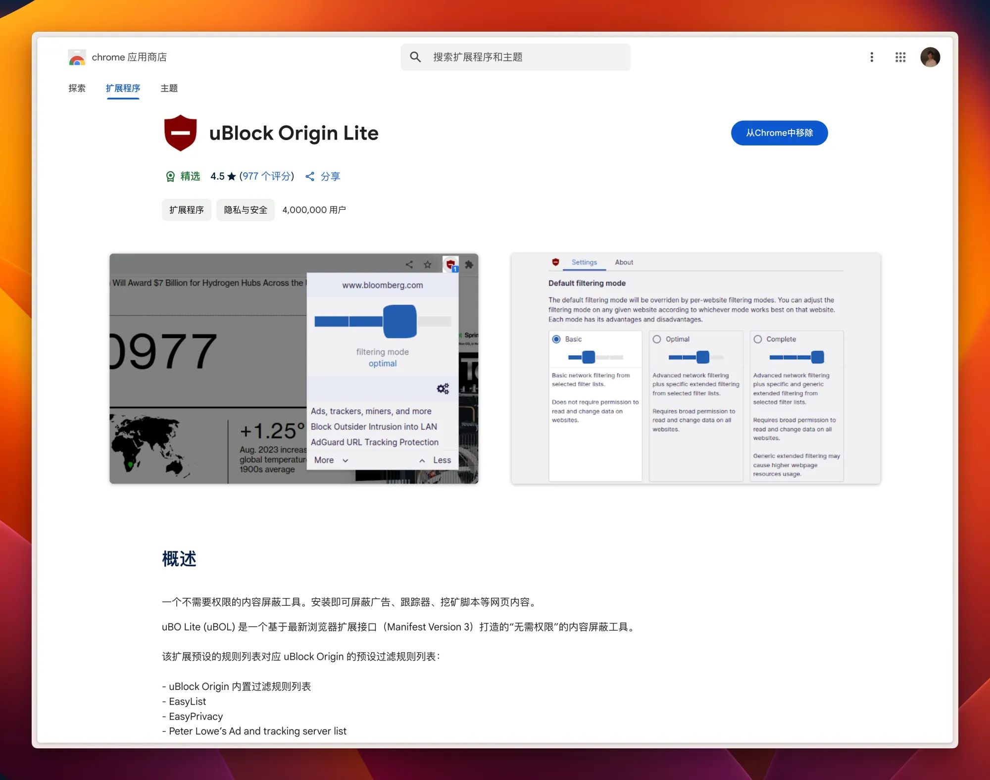 uBlock Origin Lite 轻量去广告的扩展