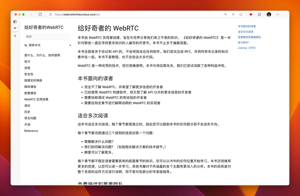 假如你对 Web 实时同学感兴趣,可以看看这个「给好奇者的 WebRTC」,挺适合入门者学习。