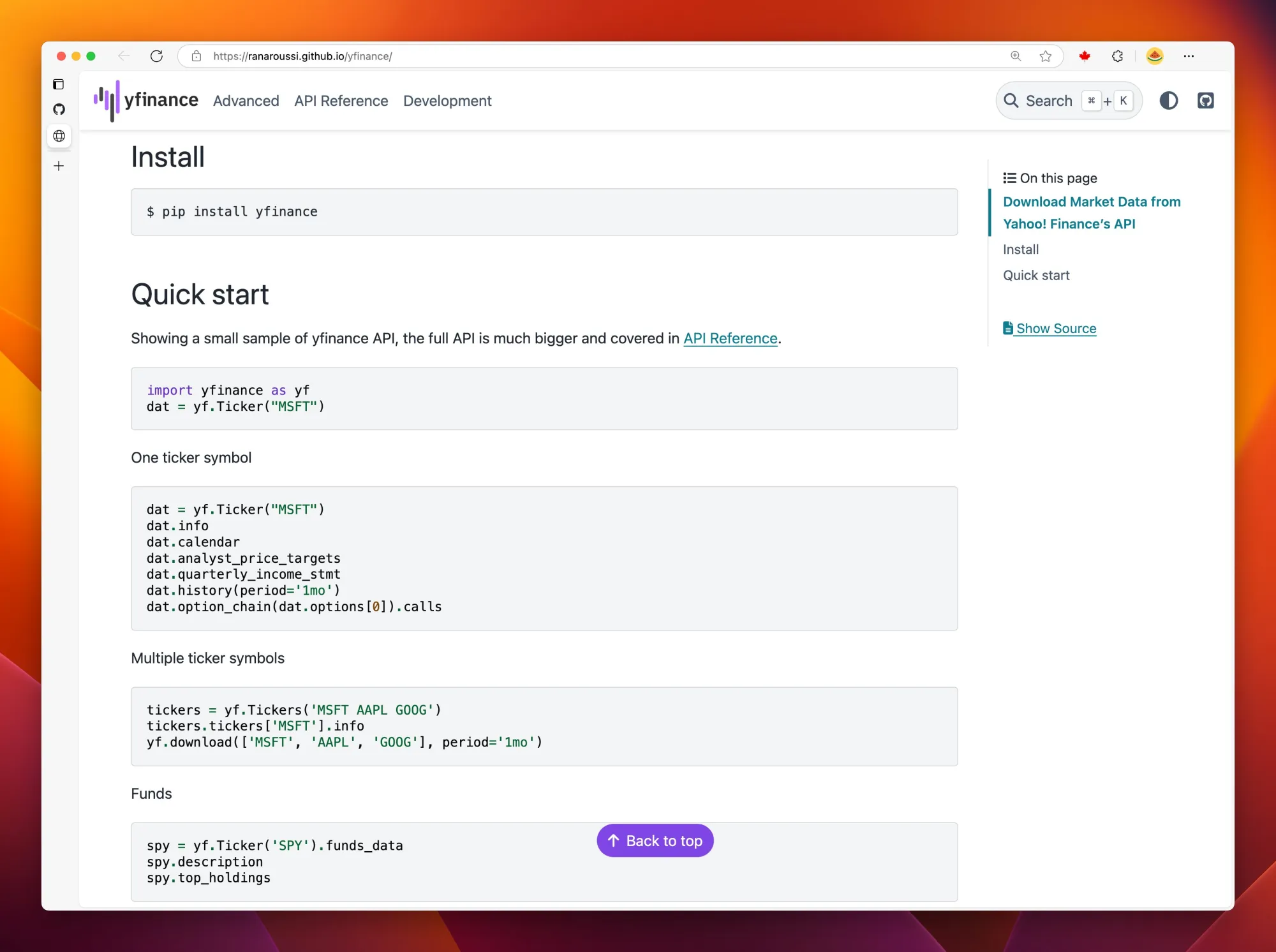 Yfinance 这个 Python 库很可以简单访问到雅虎财经的股票 API 数据,包括查询股票信息价格、下载历史市场数据等功能,使用起来 API 还听简洁的,适合基于这个做点儿小玩意。