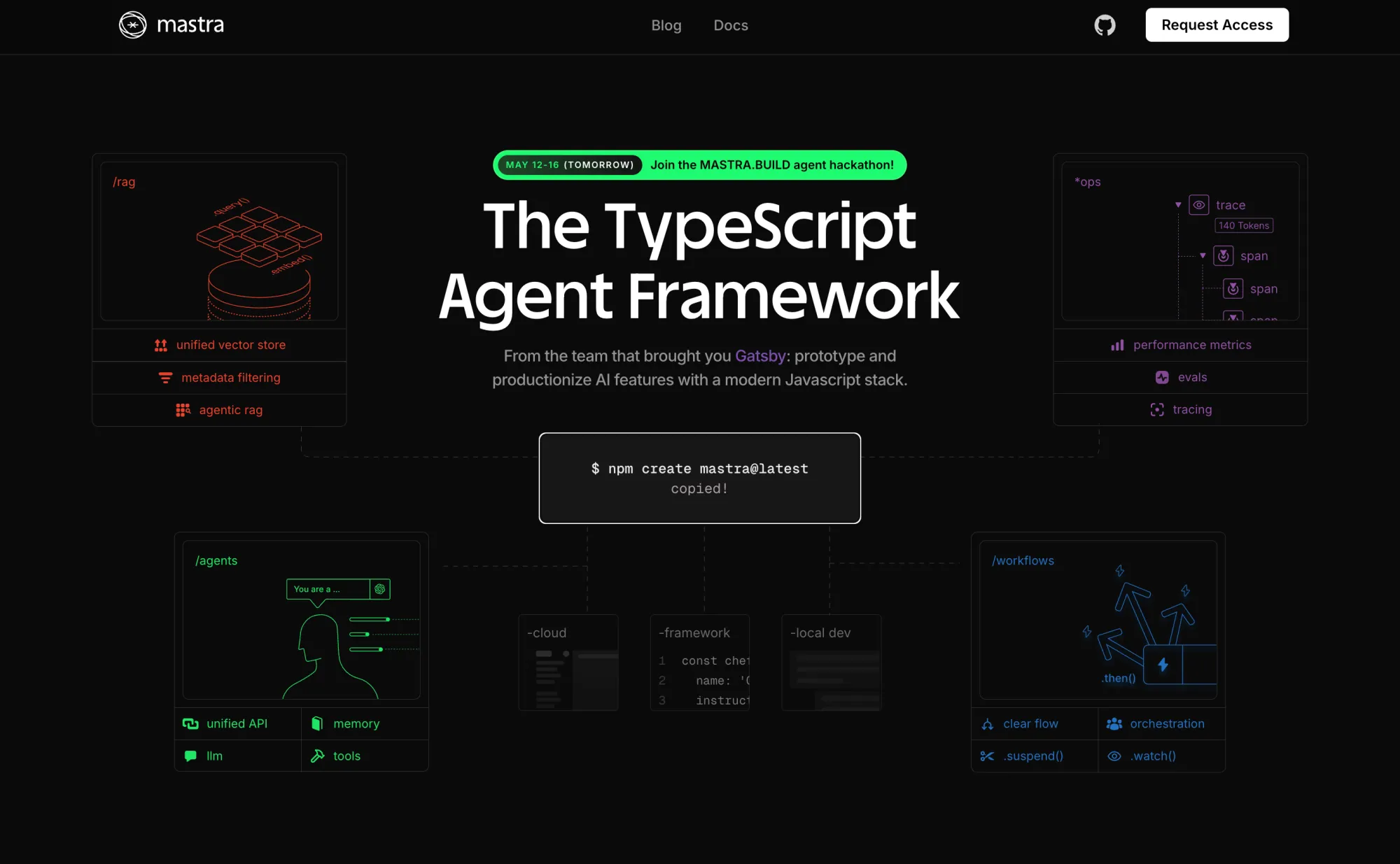 这个 TS AI Agent 框架 Mastra 真优雅,好久没有看到这么简洁美的库了,提供记忆功能框架、执行 Workflow、RAG 等功能,我感觉对于搭建低码版本的 AI 应用开发,还是需要一个 ProCode 版本的,适合工程师更自定义的开发 AI 应用。