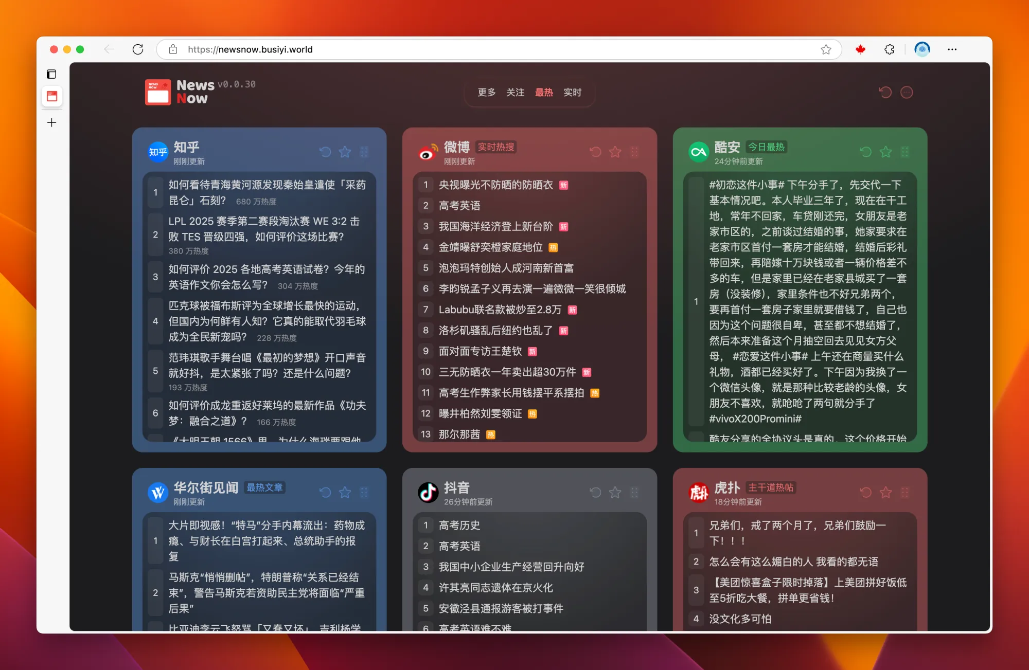 NewsNow:一个咨询聚合排行榜平台