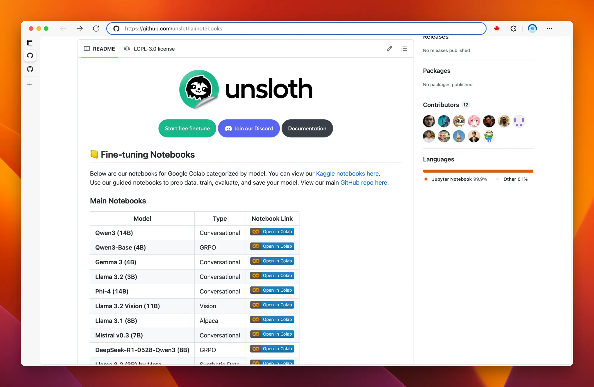 https://github.com/unslothai/notebooks