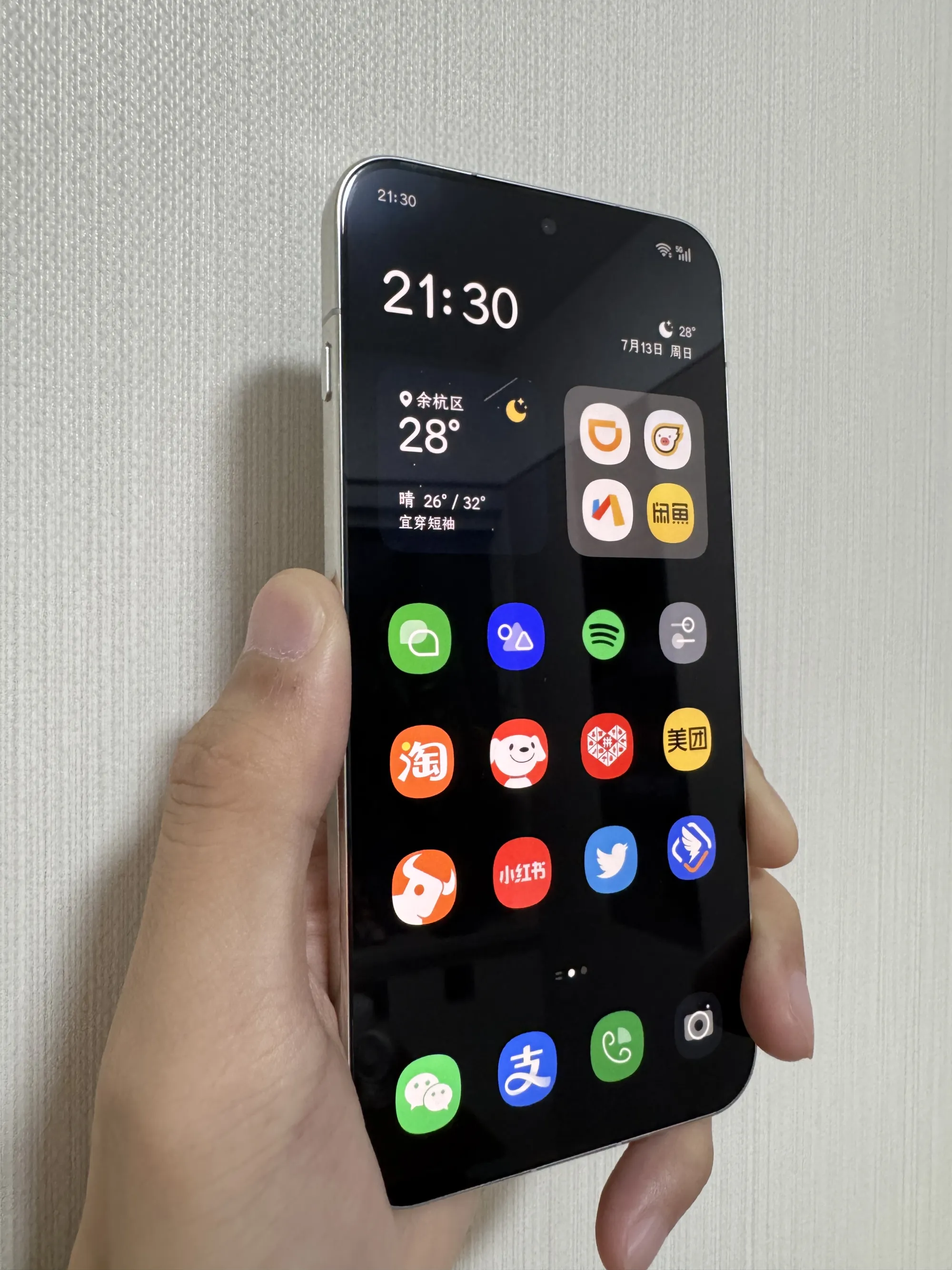 上一个手机是 15 Pro Max,屏幕观看视频/文章大小非常好,但到了夏天真的太太太大了,特别是放短裤袋子,好比装了一块砖块在口袋,同时很不好单手握持,特别是手指握住还有一点点空余,这样很好把玩。