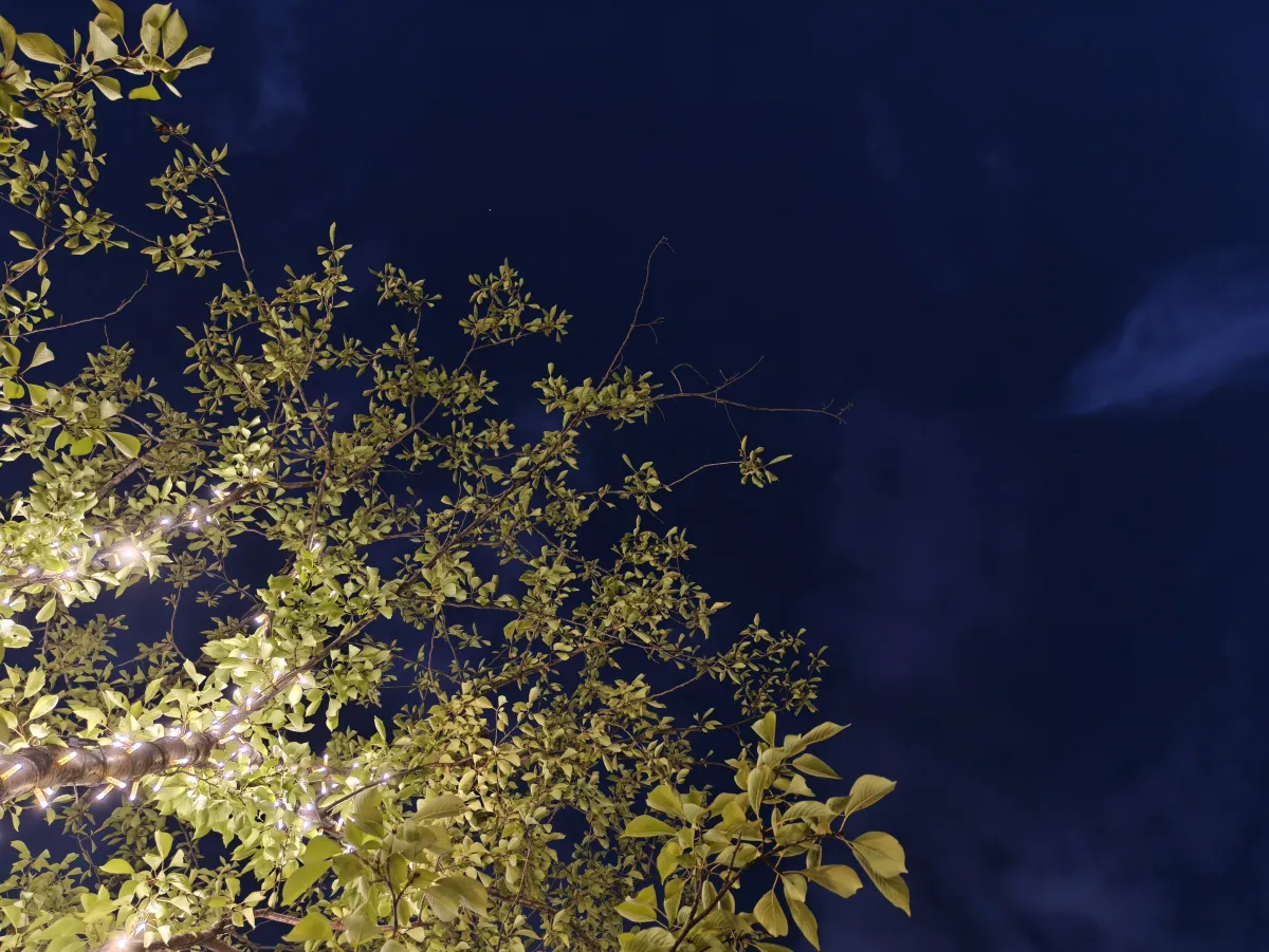 封面图拍摄于晚上找了一个躺椅,头顶是大树,然后天空刚好是蓝色的,有点儿风,不至于感觉到热,很舒服。