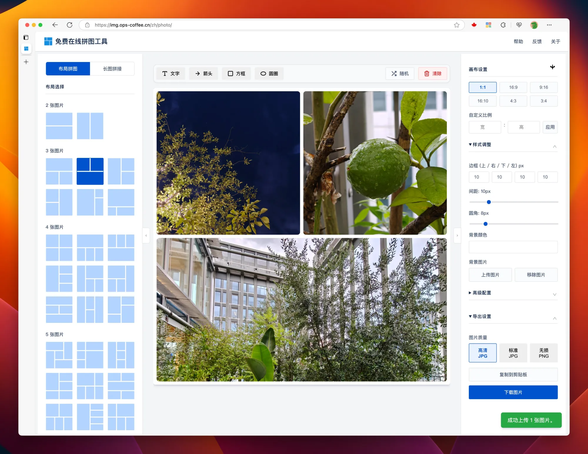 这个免费的在线拼图工作做得很简单,朴素美,所有操作在浏览器本地执行,相比一些复杂的 App 好用不少,可以很好顺手来解决一些痛点。