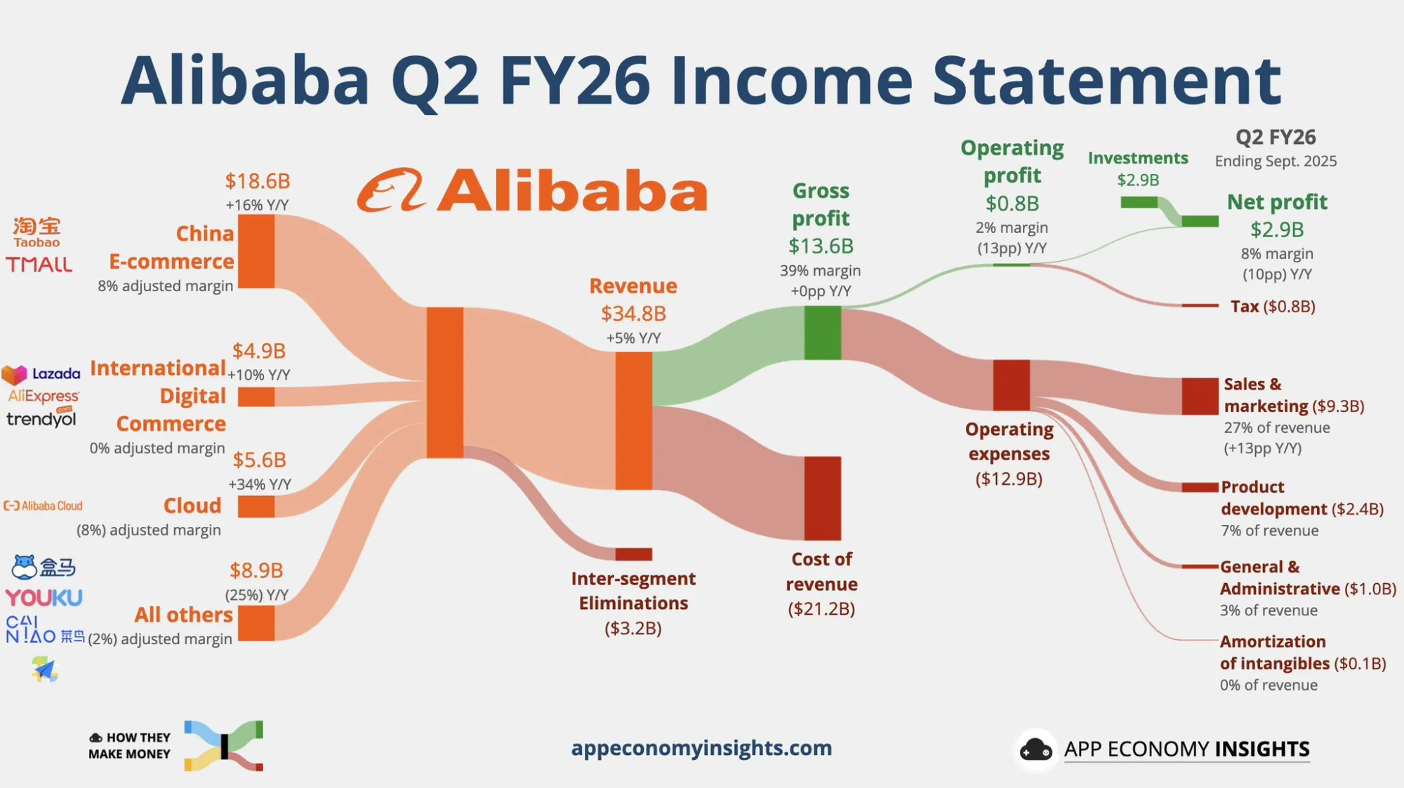 今年 Q2 阿里是怎么赚钱和花钱的
