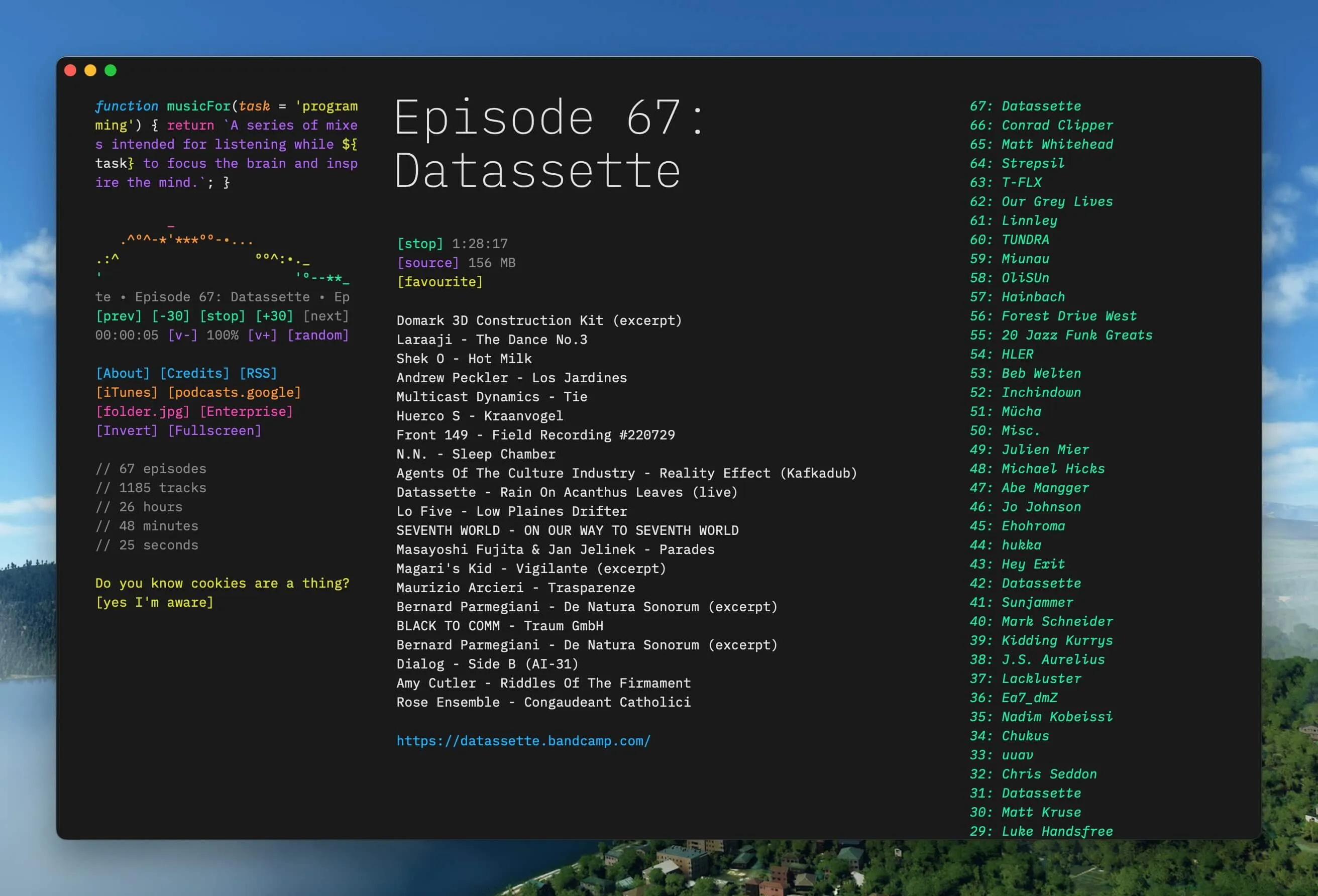 在 Pake 的官方打包应用里面,这次推荐一个好用的适合程序员使用的敲代码过程中听的音乐工具 ProgramMusic,界面效果非常 Hacker,音乐本身偏纯音乐,挺不错,也即这就是 Pake 打包一个网页成桌面端后的效果。