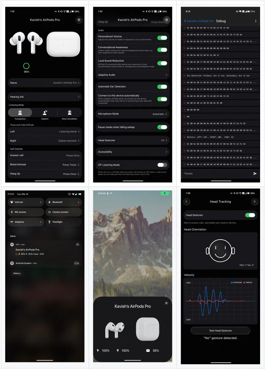 让 AirPods 摆脱了苹果生态系统的束缚,也即可以让你在 Android 手机上使用 AirPods 的几乎所有功能,比如说降噪控制、自适应模式、耳部检测、助听器、获取电池状态等功能,做得挺有心的。