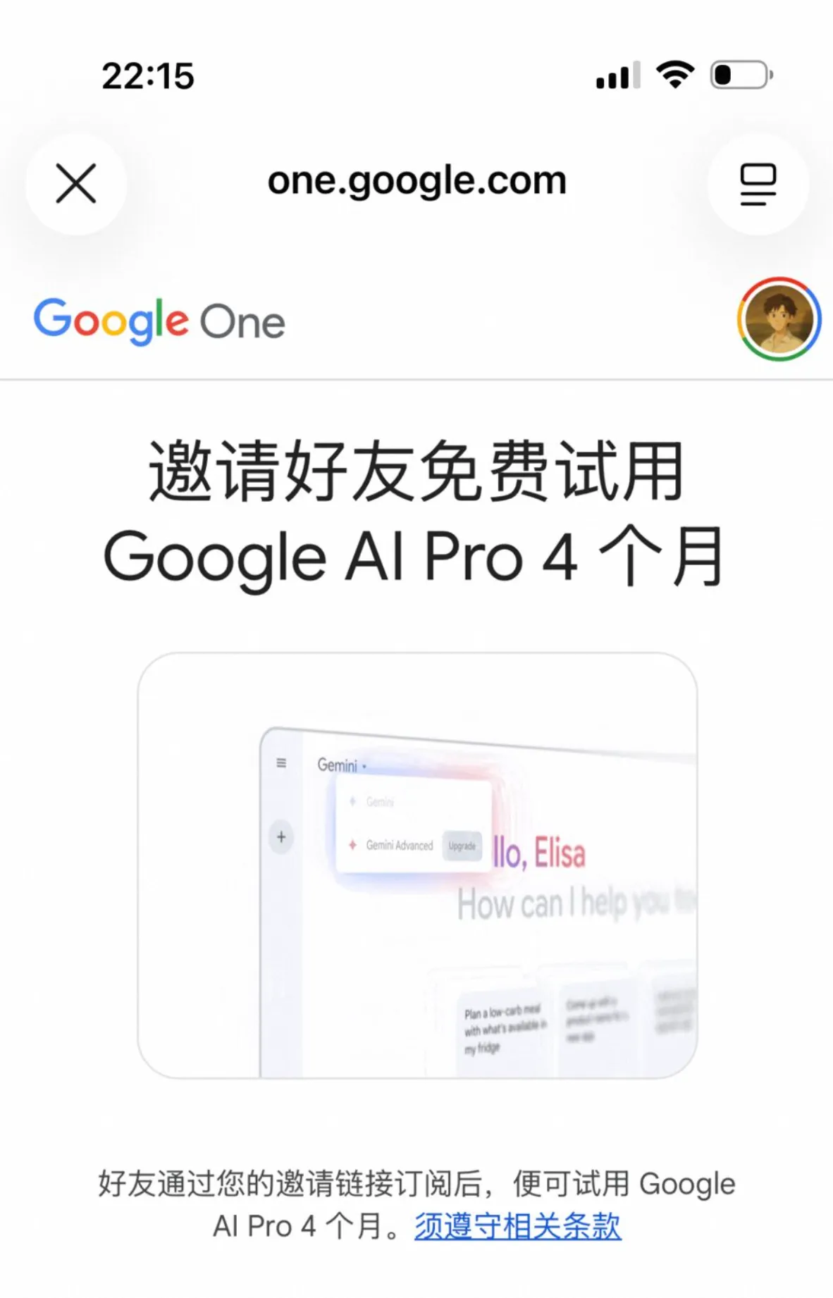 这个好不错,邀请好用免费使用 Google AI Pro 4 个月,我最近最喜欢用的就是 gemini 了,聊天和代码都很不错,假如这个活动到期也可以去找找其他的活动,都很便宜。