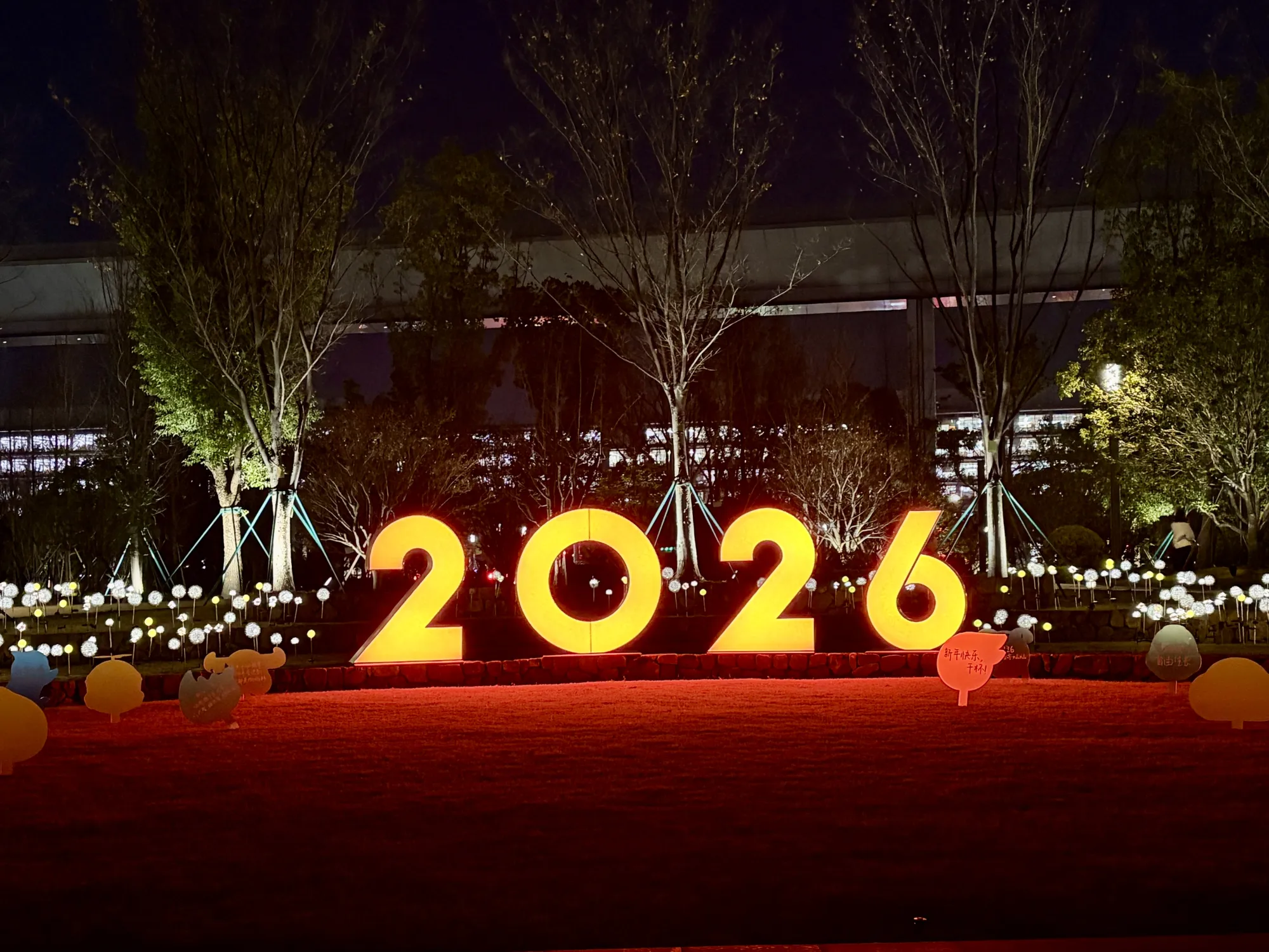 封面图拍摄于园区的一个2026的灯光装扮,猛然一想,居然的2026了,这几年过得真的是太快了,我想着慢一点。