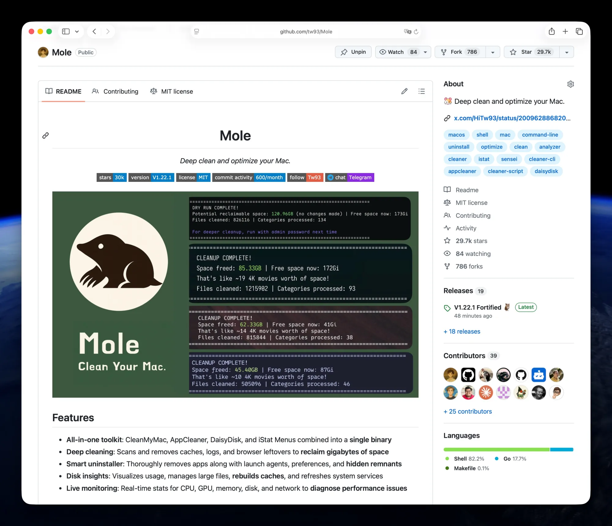 2、终端体验更顺:mo clean 的 spinner 更流畅,且延迟停止来消除闪烁,关键清理步骤都有持续反馈,整体从能用升级到舒服。