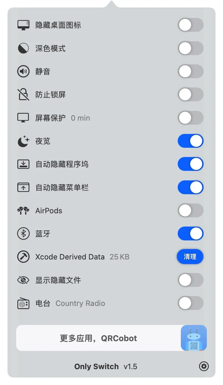 OnlySwitch:菜单栏快捷操作
