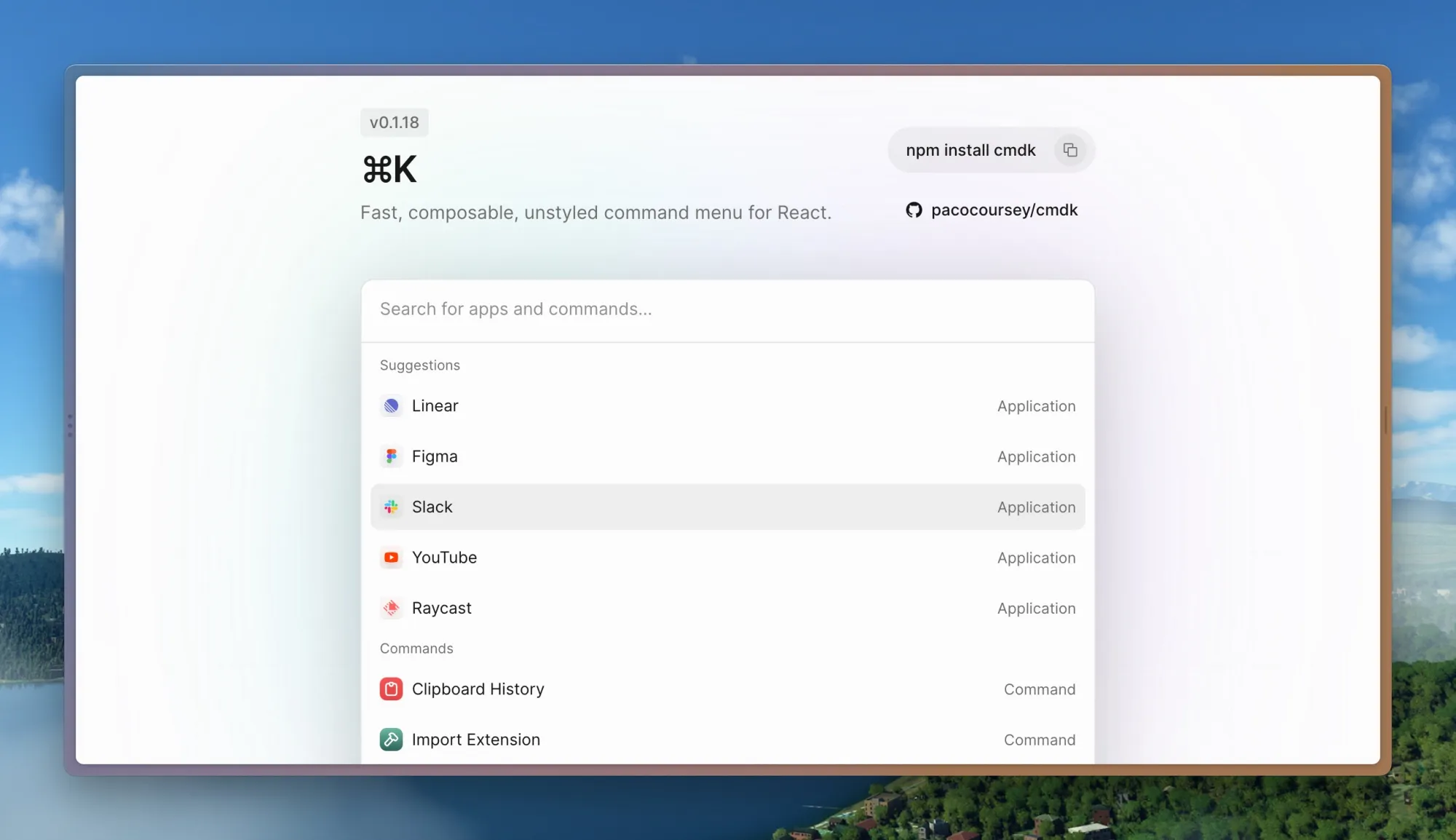 https://github.com/pacocoursey/cmdk